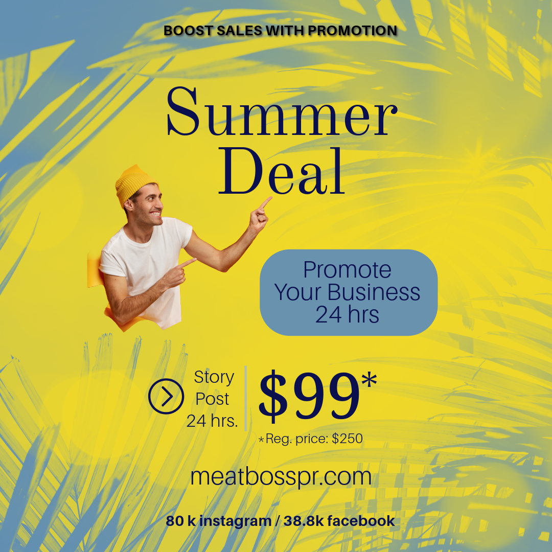 This service is for promotion only. We take your flyer (advertisement) and post it on our Instagram and Facebook Stories.